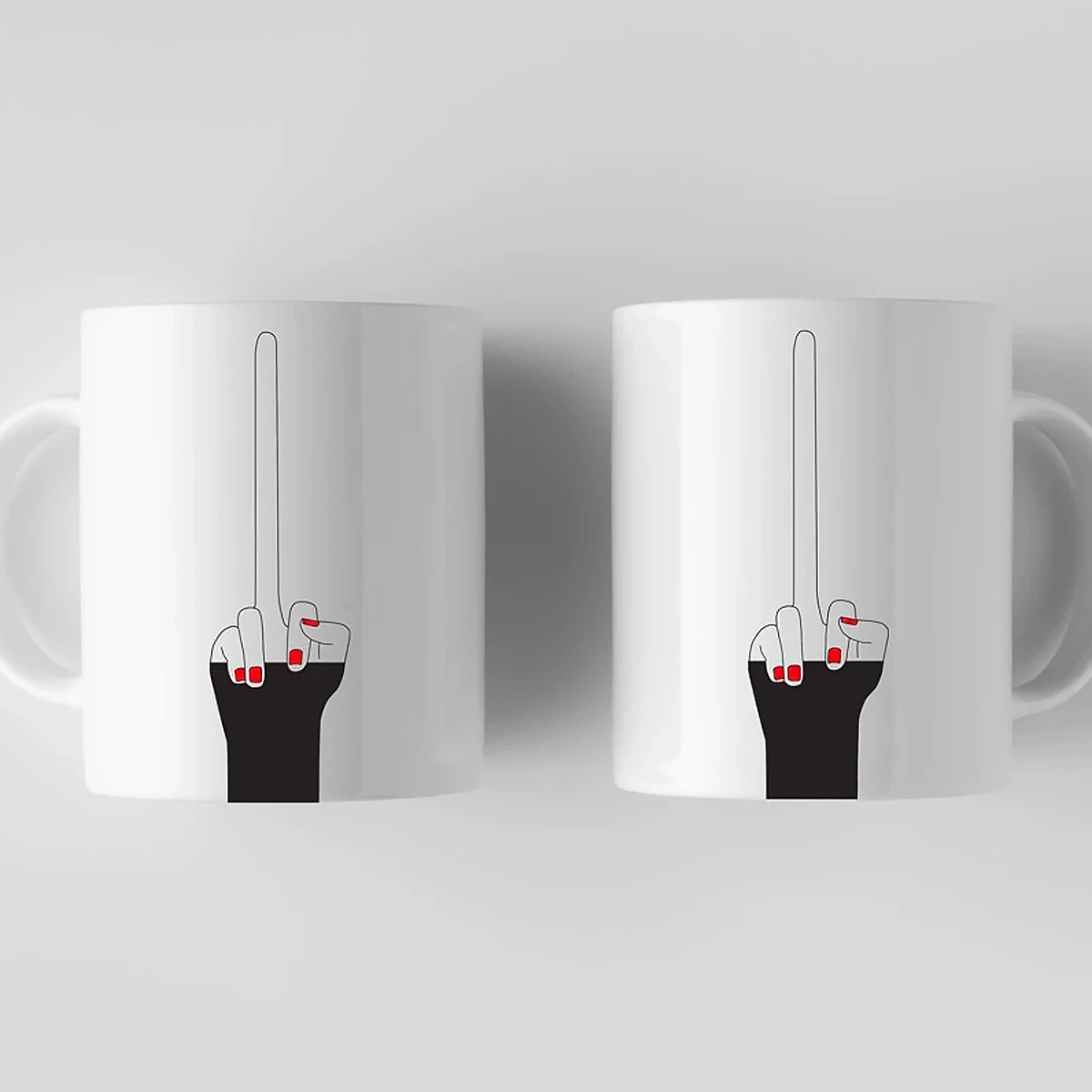 Cette tasse qui ne manque pas de doigté comporte un motif particulièrement explicite imprimé de chaque côté de la tasse, de sorte que votre entourage ne pourra pas faire autrement que de le « contempler » ! Le est un cadeau singulier mais utile à offrir à un râleur ou une râleuse. Ne pas utiliser avec une personne susceptible…