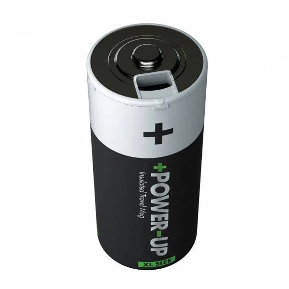 Baisse de forme ? vos « batteries » sont à plat ? rien de tel que de refaire le plein d’énergie avec le Mug thermos Pile Power Up.