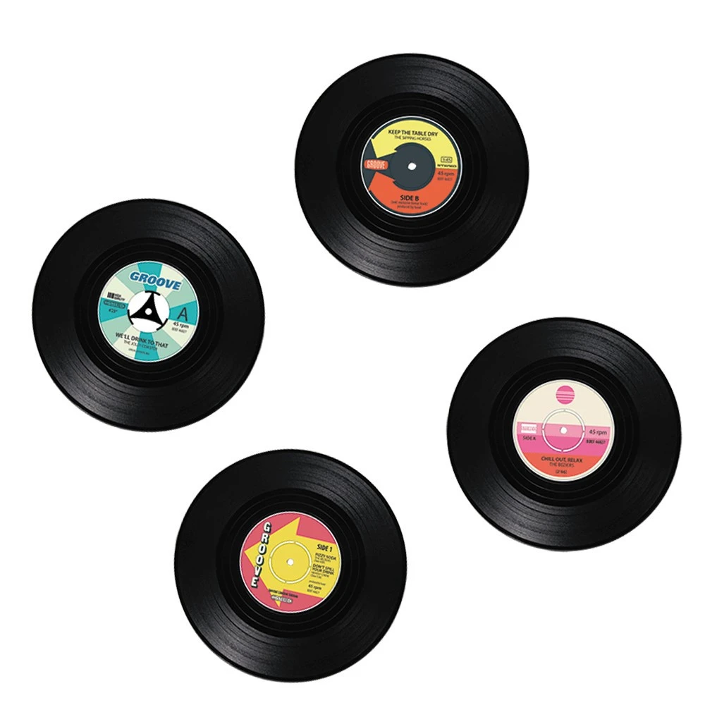 Les dessous de verre disque vinyl sont livrés par quatre. Vous bénéficiez donc de quatre disques en vinyl imitant à la perfection les vrais disques vinyl. Vous pourrez poser dessus vos verres sans crainte d’abimer votre table en la protégeant des tâches de boisson. Un look pour votre déco et surtout d’une grande originalité !