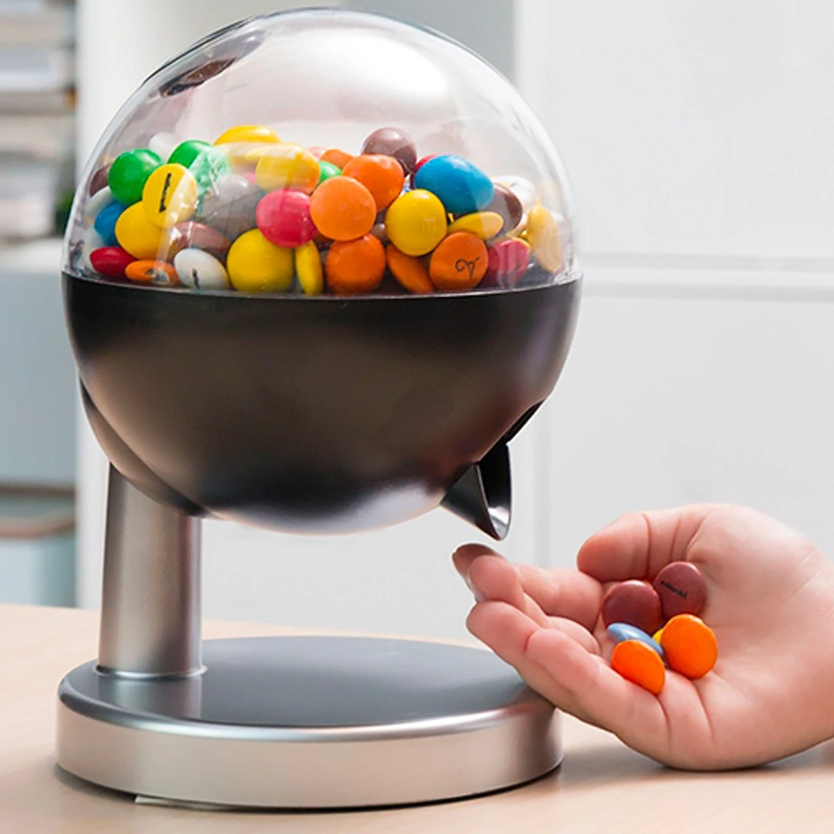 Remplissez son réservoir de bonbons, chewing-gum, M&M’s, fraises Tagada ou aussi de noisettes, amandes, pistaches, dragées ou autres cacahuètes puis avancez votre main devant la sortie et effleurez son capteur tactile. Miracle ! le détecte votre main grâce à son capteur tactile et déverse des friandises dans le creux de votre main ! vous n’avez plus qu’à déguster votre friandise préférée. Un cadeau déco utile et agréable pour tous les gourmands. Il fera sensation à l’apéritif et sera aussi bien plus hygiénique pour préserver vos friandises à l’abri.