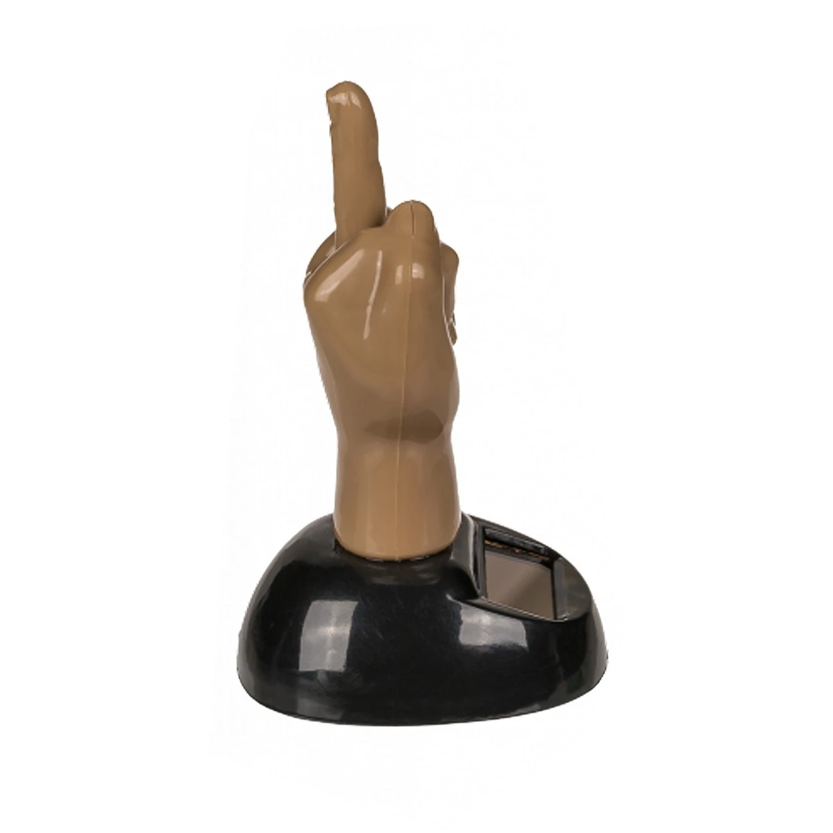 Ce petit gadget de bureau étrange en dira long à vos visiteurs sur votre état d’esprit. Rebelle ou en colère, vous n’aurez plus besoin de dresser le majeur pour signifier votre mécontentement. Le fonctionne sans piles, simplement à l’énergie solaire. Dressé en permanence vers le ciel, il s’agite d’avant en arrière dès que le soleil effleure son panneau solaire. Parfait sur un bureau ou une étagère, il pourra aussi trouver sa place sur le tableau de bord de votre voiture.