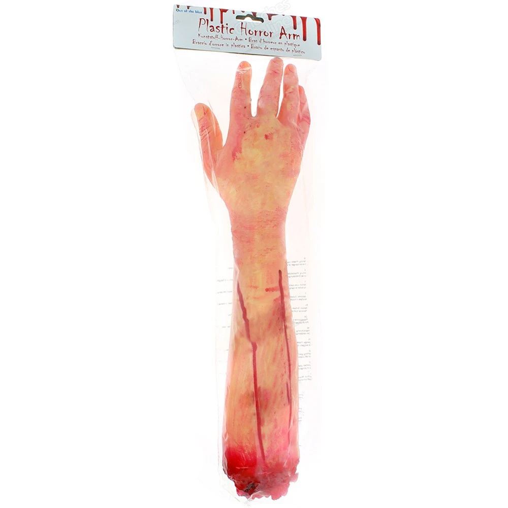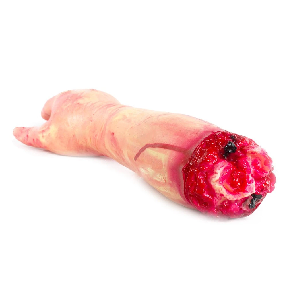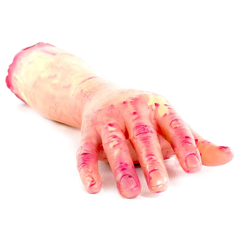 En latex et de la taille d’un vrai avant-bras, le est saisissant de réalisme. Arraché et complètement ensanglanté il laisse apparaître des os brisés avec des morceaux de chair arrachée à l’endroit où il est arraché, une horreur ! laissez le pendre coincé dans la porte de votre placard, dans le coffre de votre voiture, le réfrigérateur, la poubelle, les toilettes, la boîte aux lettres, sous la roue de votre voiture, à une fenêtre, dans un tiroir, la trappe du grenier, dans un sac, dans la douche, sous un meuble, dans une valise, dans le lit de votre soeur…. bref partout où vous pourrez faire une à votre victime. Un gadget bien dégoûtant qui trouvera une saveur particulière pour une.