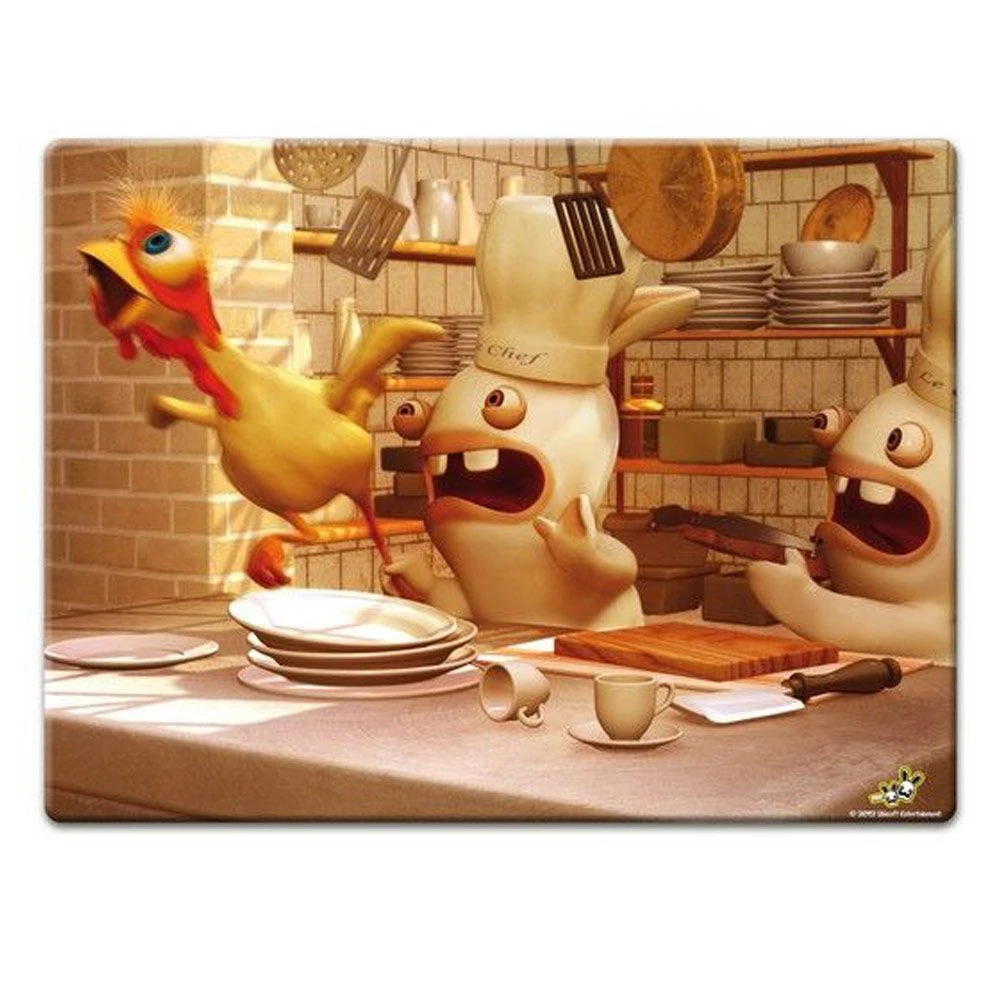 Pour découper votre poulet, boeuf ou … lapin, la planche en verre est un formidable support. Très hygiénique, facile à nettoyer, la Planche à découper en verre lapins crétins est un cadeau original pour tous les amoureux du jeu vidéo de chez Ubisoft. La planche en verre possède aussi la particularité de résister à la chaleur et peut s’utiliser comme dessous de plat. Ne faites pas comme les lapins crétins, découpez un poulet déjà mort !