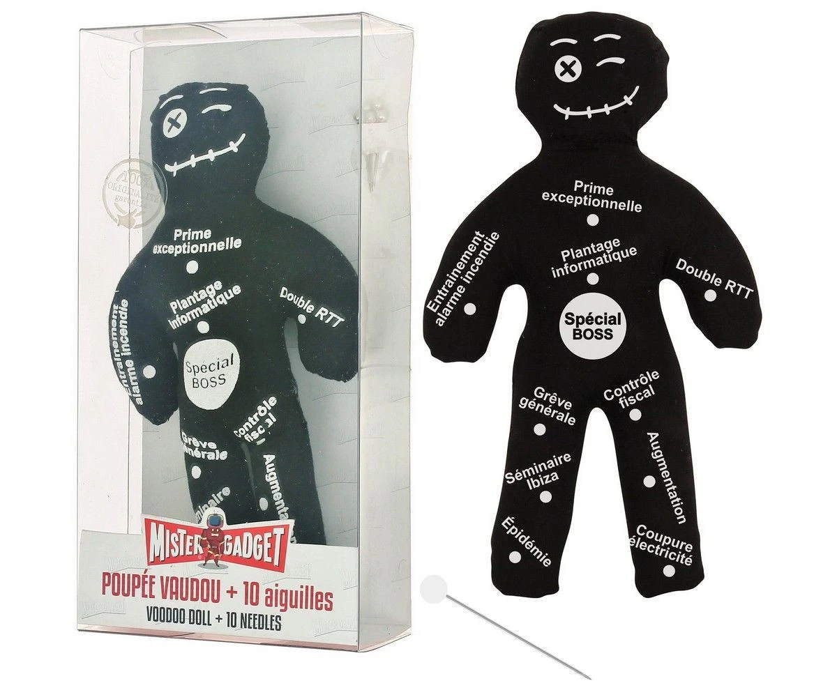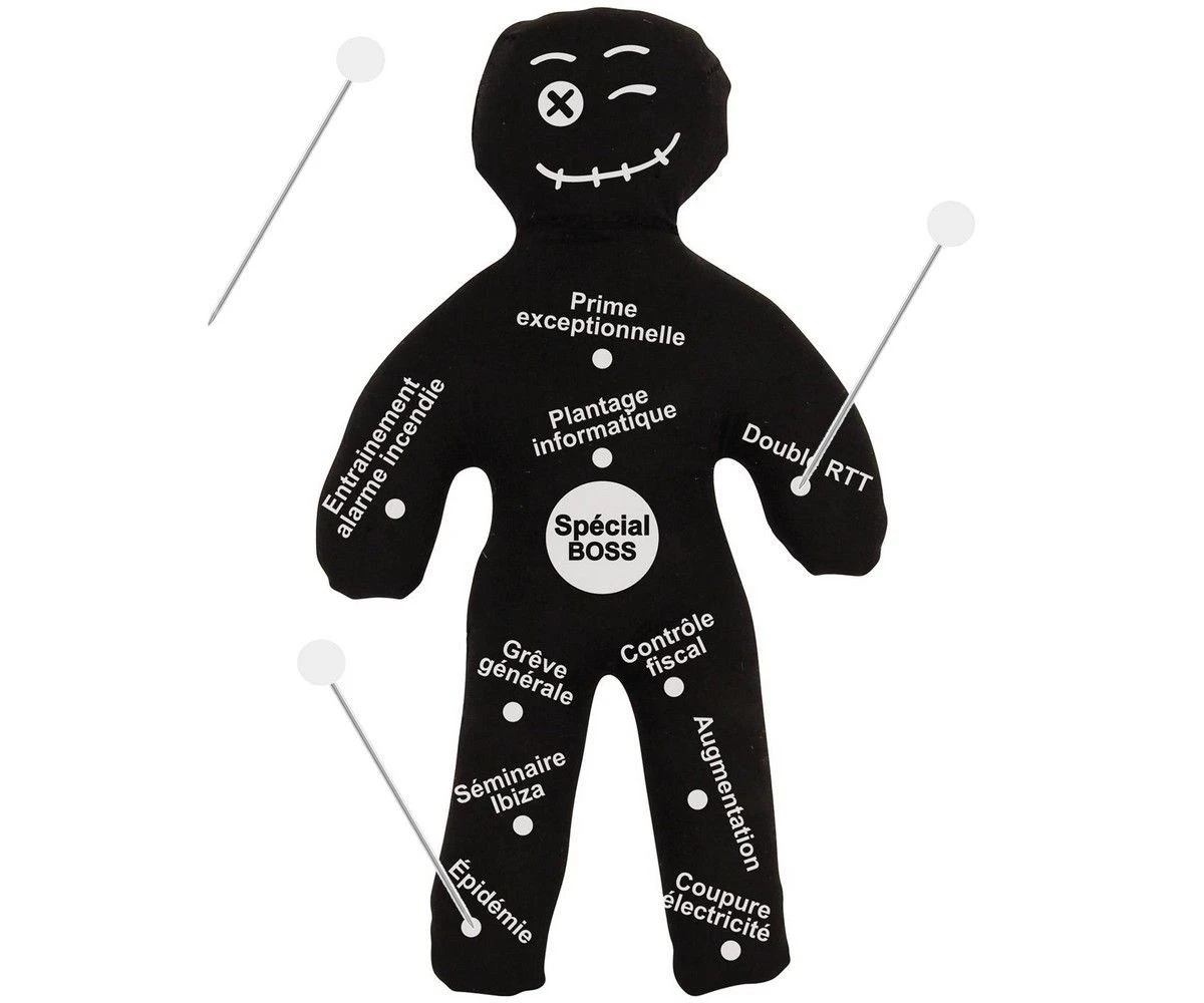 Que diriez-vous de provoquer de distrayantes catastrophes sur votre lieu de travail ? Saisissez la poupée vaudou spécial Boss et piquez là où çà fait mal pour votre patron et tellement de bien pour vous : alarme incendie, grève générale et plantage informatique ! puis un petit contôle fiscal pour le patron avec une coupure générale d’électricité pendant que le bureau sera déserté à cause d’une épidémie. Pas d’épidémie pour vous, puisque vous serez en séminaire pour une semaine à Ibiza après avoir reçu une augmentation et une prime exceptionnelle ! il ne vous restera plus qu’à doubler vos jours de RTT pour que vous vous sentiez totalement guéri.