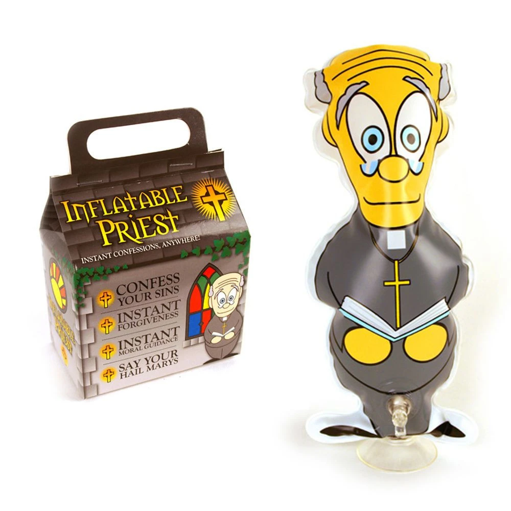 Avec le Prêtre gonflable, c’est où vous voulez quand vous voulez. Vous pouvez le placer n’importe où et même l’accrocher avec la ventouse et il sera prêt à être votre guide pour vos confessions quotidiennes ! Toutefois, ce gentil prêtre n’est qu’un substitut temporaire, n’oubliez pas de vous confesser régulièrement à un vrai prêtre si vous êtes un vilain, très vilain pécheur.
