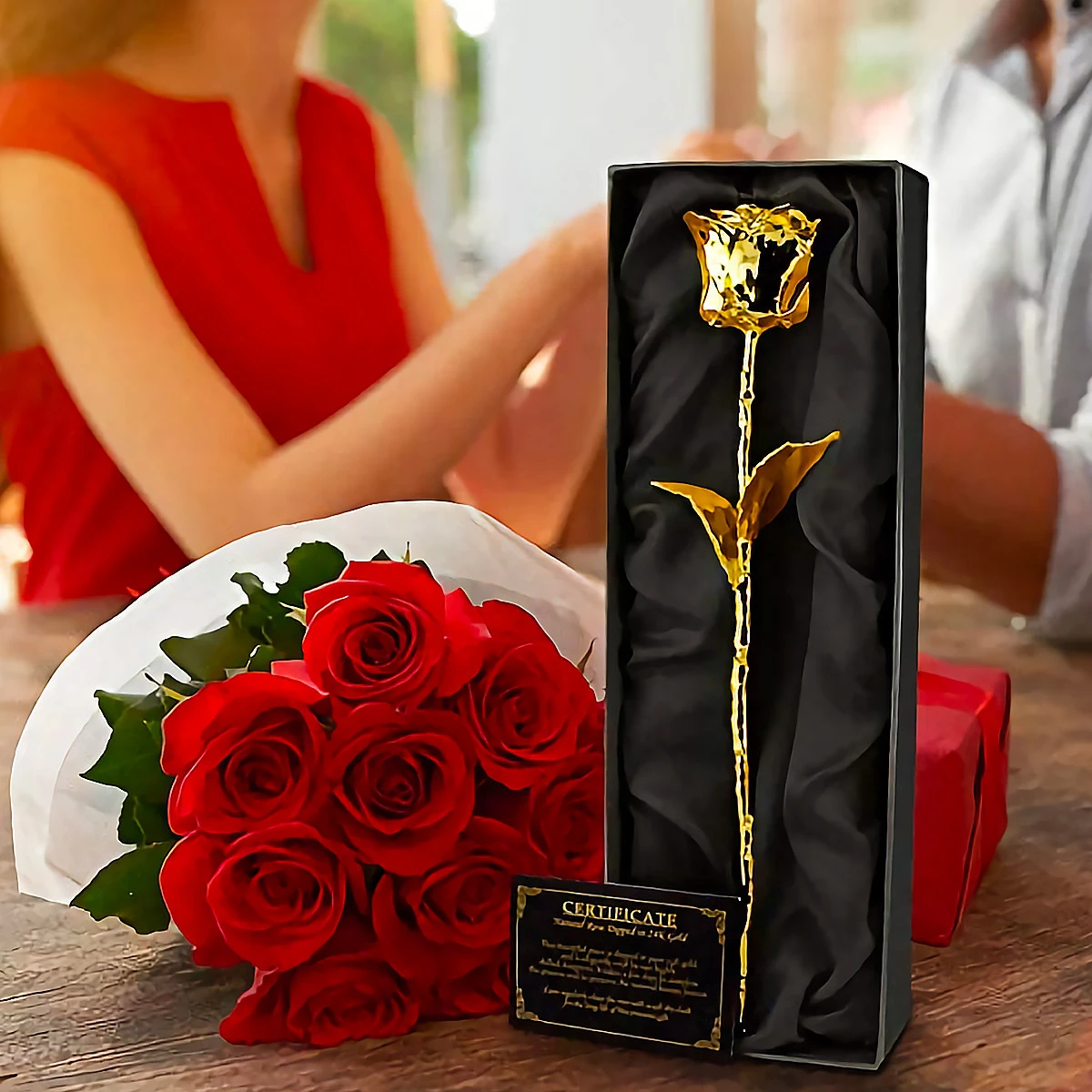 - véritable rose enduite d’or 24 carats,