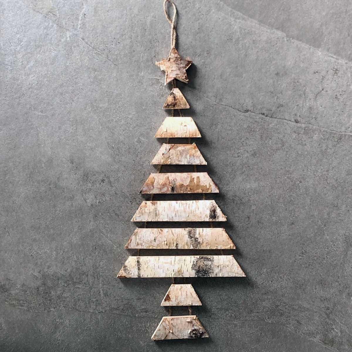 Cette décoration de Noël originale et naturelle est composé de plusieurs tronçons de bois reliés entre eux par des cordelettes pour former un sapin de Noël orné d’une étoile. Pour être précis, le bois est du Bouleau, ce qui est plutôt insolite pour un sapin, d’être en bois de bouleau (huhuhu…). Mais il y a une raison à cela, l’écorce du bouleau est naturellement blanche et décorative et se prête parfaitement à cette décoration hivernale. Blague à part, le est une décoration de Noël du plus bel effet et peut être suspendue où bon vous semble. Pourquoi pas sur votre porte d’entrée, à la place de la traditionnelle couronne de Noël ? De par sa conception, vous avez l’assurance d’avoir une décoration unique, comme chacun des morceaux de bois qui la composent.