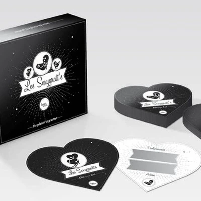 Les Sexygratts, nouvelles stars de vos nuits de plaisir… Les petits monstres dessinés sur chaque carte en forme de coeur vous proposent 80 cartes gages : 40 gages à gratter « pour elle » et 40 gages à gratter « pour lui ».