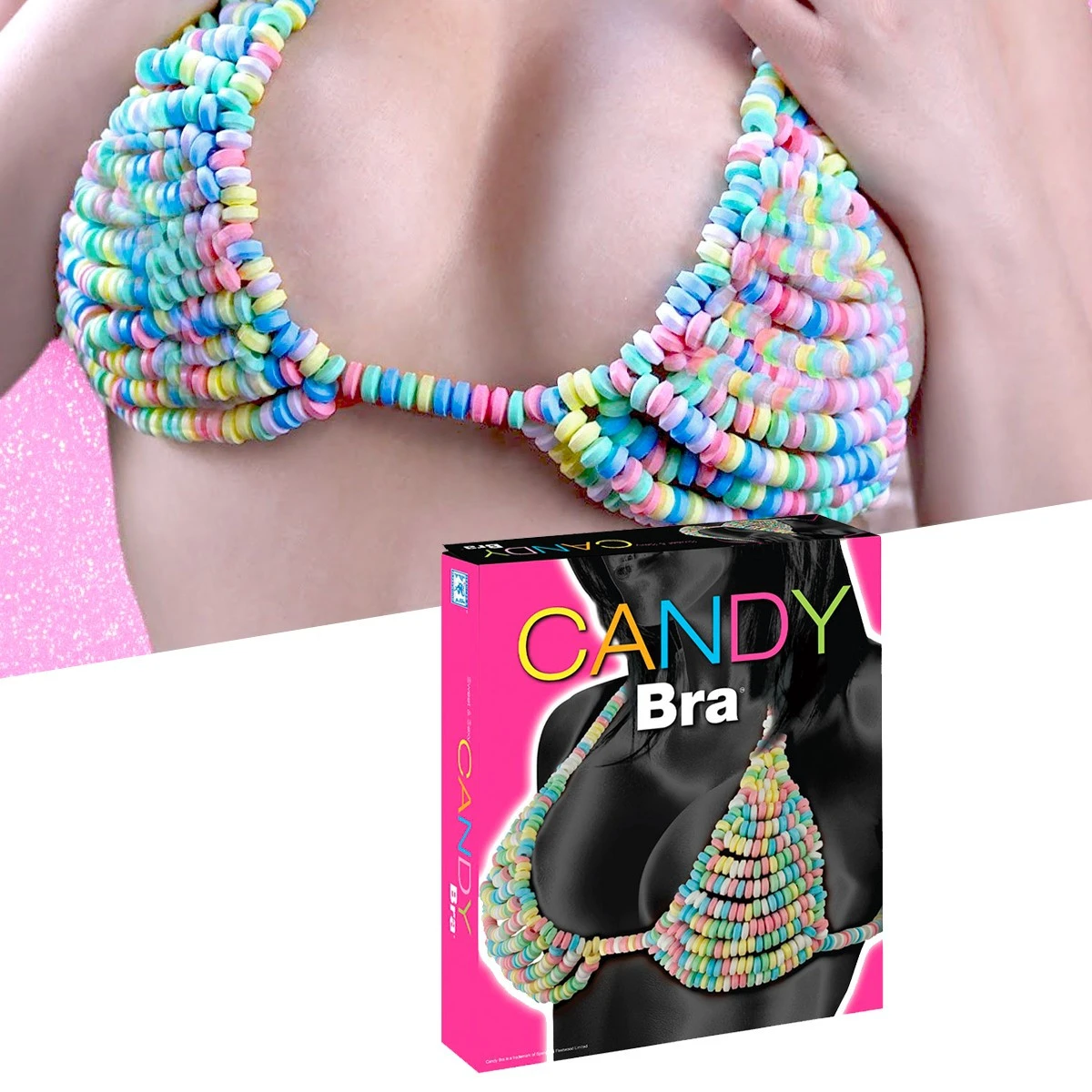Voici le plus coquin des desserts adapté au régime spécial des amoureux transis. Le est un superbe soutien-gorges composé de plus de 300 bonbons fruités et faibles en calories (40) ! et il ne fait aucun doute qu’il vous en fera brûler beaucoup plus….