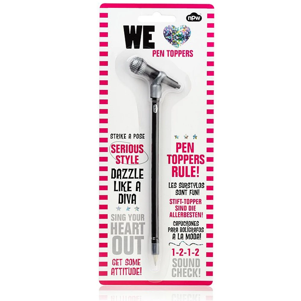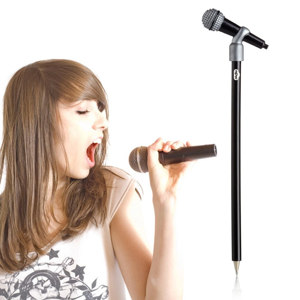 - un stylo à encre noire équipé d’un capuchon en forme de micro,
