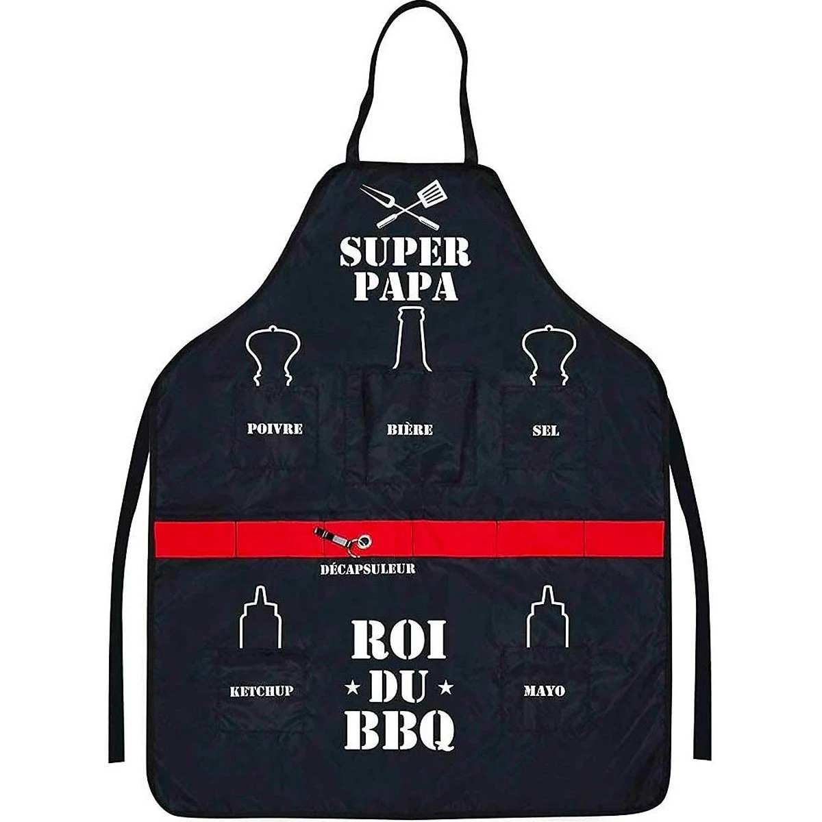 Toujours prêt à griller la moindre saucisse ce super héros équipé de son est chaud comme la braise du barbecue. Les super-héros possèdent en principe une tenue particulière qui permet de les reconnaître au premier coup d’oeil. Superman met son slip sur son pantalon, Batman est déguisé en chauve-souris et est équipé de son tablier ! Tel un bouclier, ce super tablier protègera avec vaillance votre super papa lorsqu’il affrontera les « brochettes maléfiques » et les « côtelettes diaboliques » rendues célèbres par leur jet de matière grasse lorsqu’elles se débattent sur le grill. Le comporte cinq poches de rangement pour avoir tout à portée de main ! une poche pour accueillir le ketchup ou la Mayo, une pour le sel, une pour le poivre, et une pour la bière (parce qu’il fait bien chaud devant le grill) sans oublier le décapsuleur intégré ! Le tablier à offrir à votre cuisinier préféré pour le déclarer officiellement