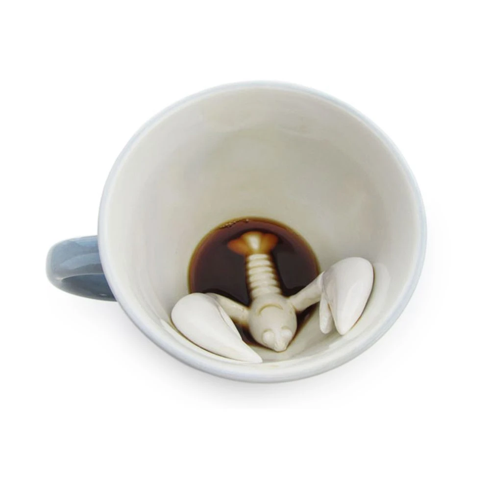 Rencontre inattendue avec un Homard ! Au fur et à mesure que vous buvez votre café ou votre thé dans cette Tasse Créature Homard, vous découvrez, comme nichée au fond, un homard.