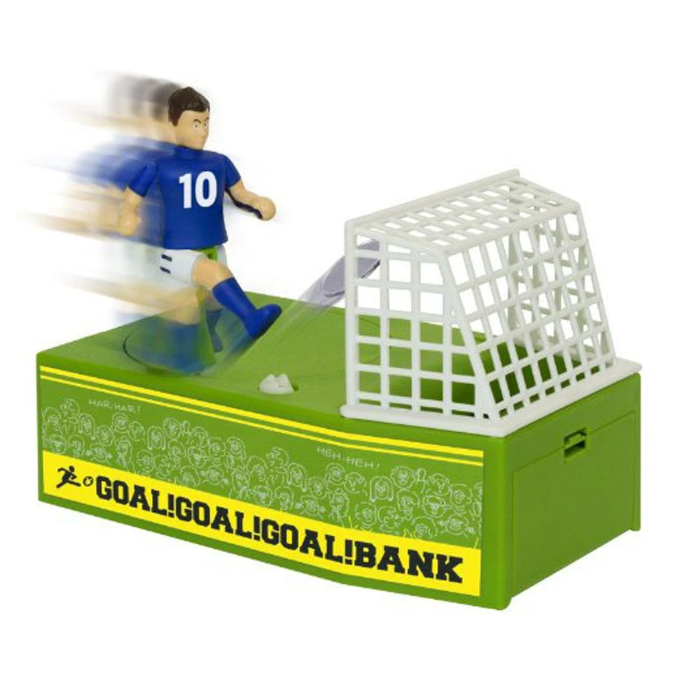 La pièce est envoyée dans les buts et ainsi au fond de la tirelire. Dès qu’il a marqué, le joueur lève les bras et revient à sa position initiale ! Un cadeau original à montrer absolument à vos amis, à offrir à votre enfant ou à apporter au bureau, tout le monde va l’adorer !