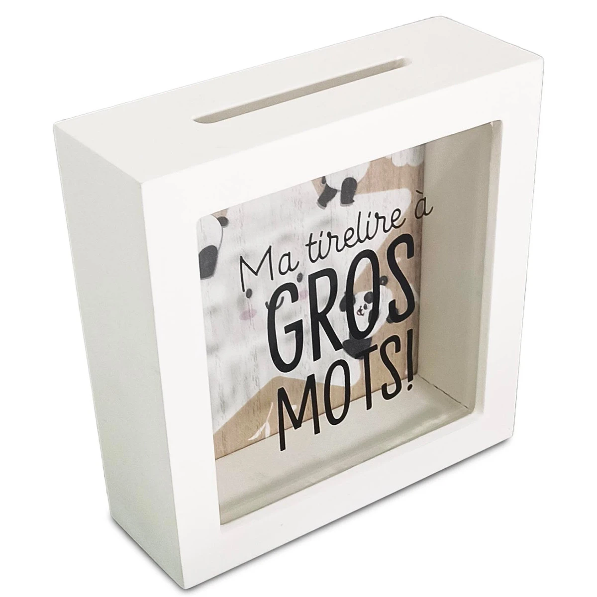« M**de ! mais p**ain tu commences à me faire ch**r !! » et Bim ! les euros pleuvent dans la tirelire ! Avec son design sobre et élégant, la possède une vitre qui permet d’un coup d’oeil de comptabiliser ô combien le vocabulaire de la famille est grossier. Chaque « gros mot » prononcé, chaque juron lancé verbalement sera immédiatement transformé en monnaie dans la tirelire. L’idée étant que la tirelire ne soit plus remplie après quelques semaines de langage plus soutenu. Ainsi, le gros mot se transformera en gros lot !