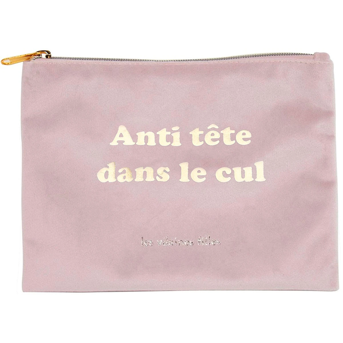 Les nuits sont courtes quand on aime faire la fête ! et les réveils sont raides. Les yeux au milieu de la figure, le teint pâle, une haleine de coyote etc… Mais qu’importe ! vous avez tout votre attirail pour effacer les séquelles d’une nuit de folie dans votre Cette charmante trousse en velours rose poudrée est « so girly » ! L’inscription dorée « anti-tête dans le cul » apporte une touche d’humour réaliste et totalement assumé. En somme, cette trousse est un petit cadeau utile et amusant pour les filles toujours partantes pour faire la fête !