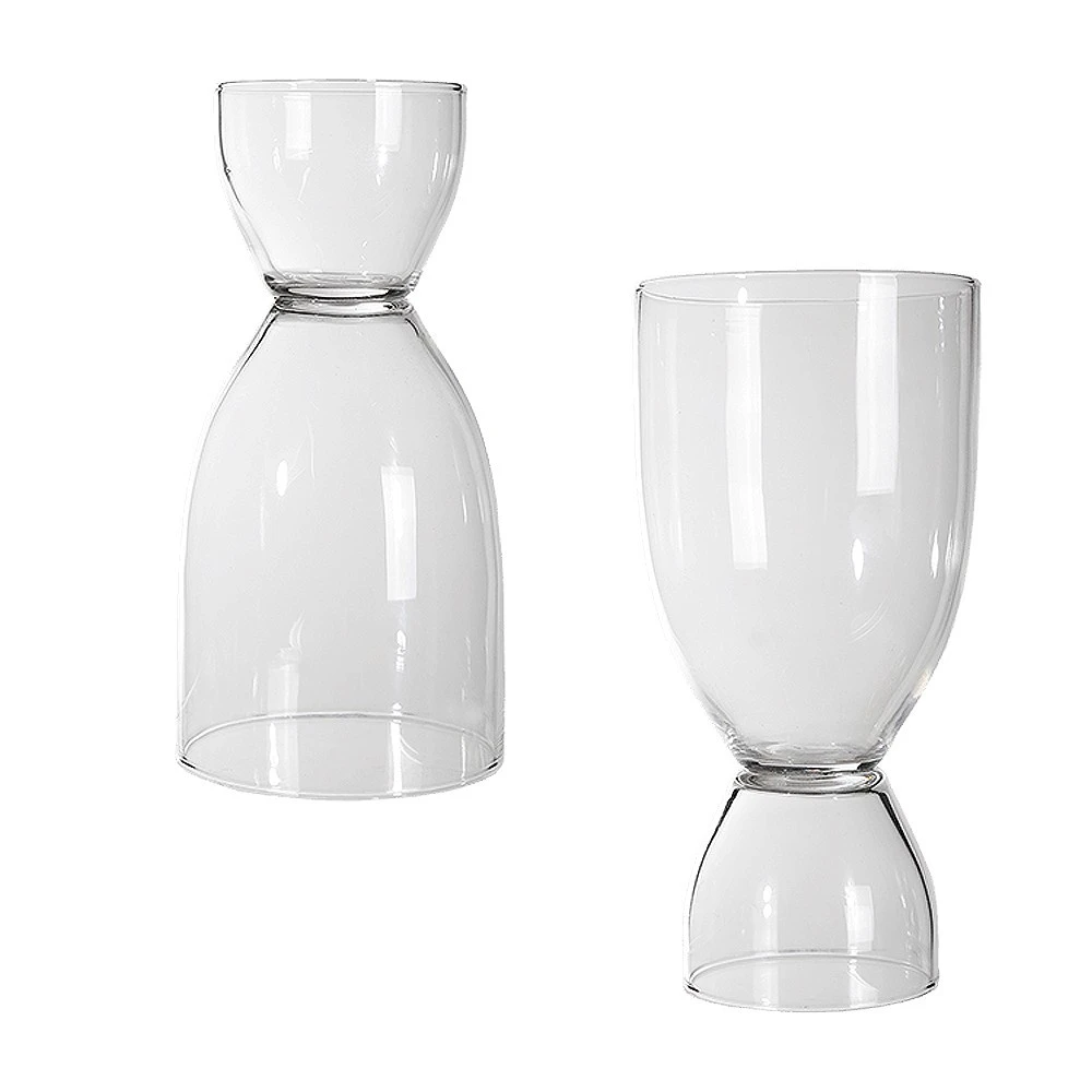 Ce verre original comprend deux réceptacles différents en fonction de la boisson que vous souhaitez consommer. Du côté le verre possède une capacité d’environ 500 ml et du côté (shooter) vous pouvez verser 100 ml. Un seul verre pour deux utilisations possibles, voici qui vous fera gagner de la place dans vos placards tout en utilisant un verre original.